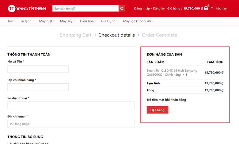 Khai báo đầy đủ thông tin để hoàn tất thủ tục đặt mua sản phẩm.