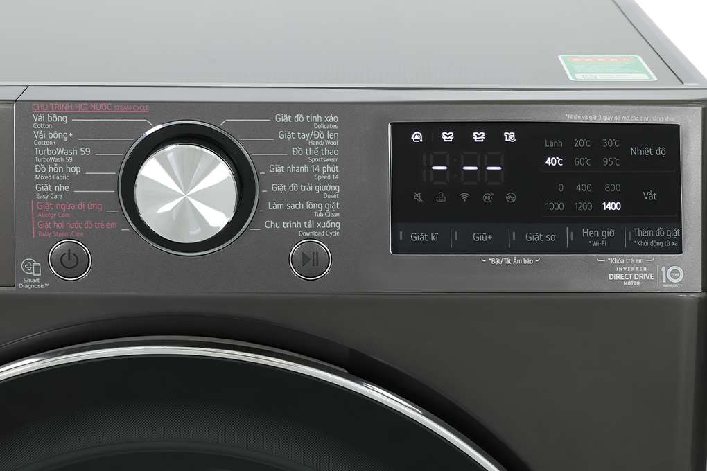 - Tích hợp sẵn 14 chương trình giặt phù hợp cho nhu cầu giặt giữ khác nhau: TurboWash 59, giặt hơi nước đồ trẻ em, giặt ngừa dị ứng, giặt nhanh 14 phút,... (xem chi tiết tại thông số kỹ thuật). Chương trình giặt ngừa dị ứng giúp loại bỏ các mạt bụi có thể gây dị ứng hoặc các vấn đề về hô hấp.