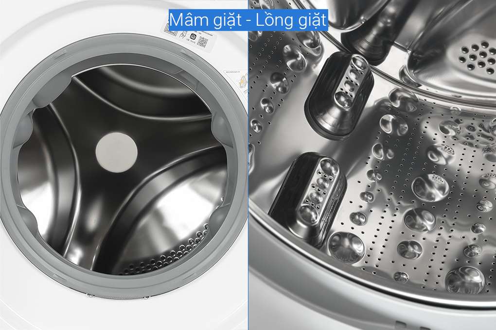 - Vỏ máy kim loại sơn tĩnh điện có độ bền cao, ít bị phai màu và hạn chế tình trạng gỉ sét. Lồng giặt thép không gỉ có độ bền cao. Đây là chất liệu vi khuẩn khó bám dính và sinh sôi nên giúp bảo vệ da và sức khỏe người dùng.