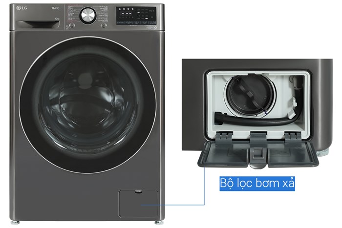 - Khối lượng giặt: 12 kg, đáp ứng nhu cầu sử dụng trong hộ gia đình có trên 7 thành viên.