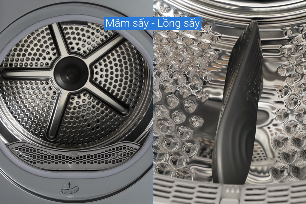 Cơ chế: Sấy bơm nhiệt sử dụng máy nén làm nóng luồng khí làm khô quần áo với nhiệt độ vừa phải, bảo vệ sợi vải và tiết kiệm điện hơn các công nghệ sấy thông thường.