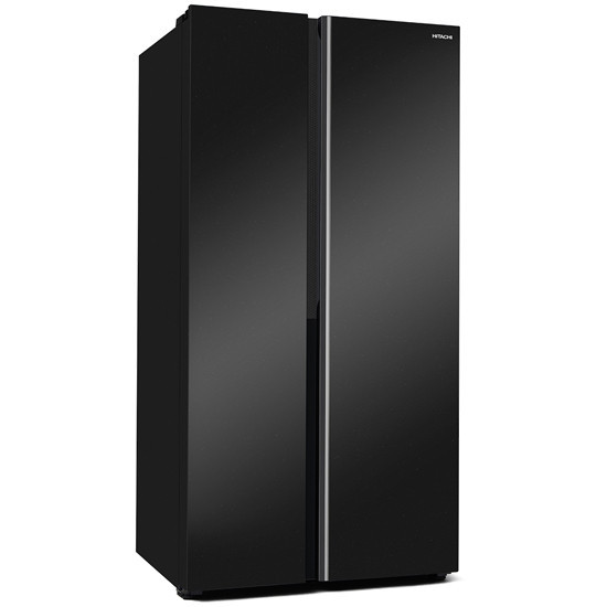 - Tủ lạnh Hitachi HRSN9713ESUVN thiết kế Side by Side 2 cửa với màu đen ánh sao sang trọng, dung tích lớn 656L, phù hợp không gian bếp hiện đại.
