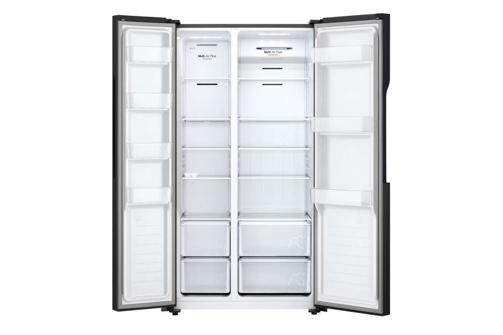 - Thuộc dòng tủ lạnh Side by side, chất liệu cửa tủ được làm từ thép không gỉ bền đẹp với thời gian, màu đen sang trọng phù hợp với nhiều kiểu thiết kế nội thất.