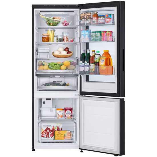 - Ngăn lạnh được thiết kế nằm trên ngăn đá cùng các khay chia tủ ra thành nhiều ngăn, cung cấp không gian lưu trữ lớn. Đồng thời ngăn rau củ Fresh Zone hỗ trợ người dùng bảo quản các loại rau củ và trái cây một cách hiệu quả.