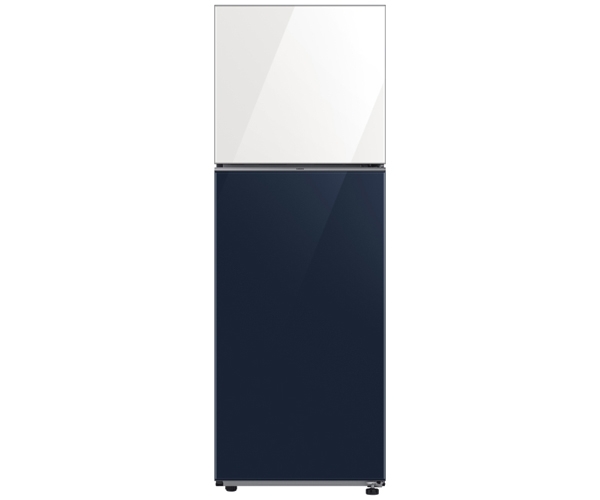- Tủ lạnh Samsung 2 cửa ngăn đá trên sở hữu thiết kế Bespoke với phối màu Xanh Navy hiện đại, dễ dàng hài hòa với mọi phong cách thiết kế bếp.
