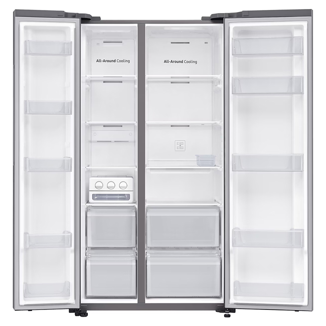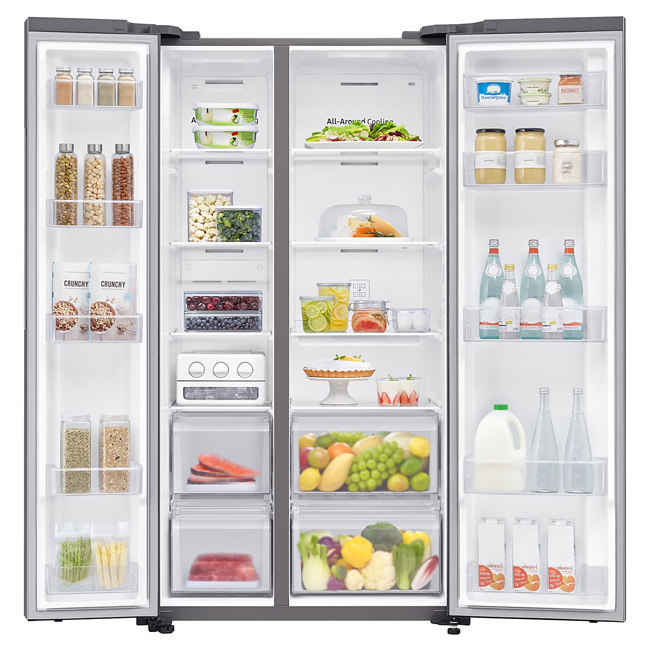 Với tủ lạnh lớn việc giữ nhiệt độ đều khắp rất quan trọng để giữ thực phẩm tươi lâu mà không đóng băng cục bộ. Công nghệ All Around Cooling của tủ lạnh 2 cánh Samsung Side by Side giúp kiểm soát thay đổi nhiệt độ; cùng hệ thống họng gió riêng cho từng khay tạo luồng gió đảo chiều, giữ nhiệt độ đồng đều khắp các khu vực.