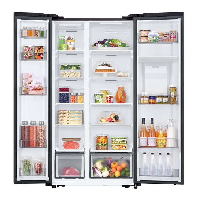 Nâng tầm gian bếp với thiết kế thời thượng từ tủ lạnh Samsung Side by Side mới. Thiết kế phẳng giảm thiểu chi tiết với tay cầm và bảng điều khiển được đưa vào bên trong một cách tinh tế, tạo sự liền mạch tổng thể cho gian bếp, cùng chất liệu thép không gỉ cao cấp bền đẹp theo thời gian.