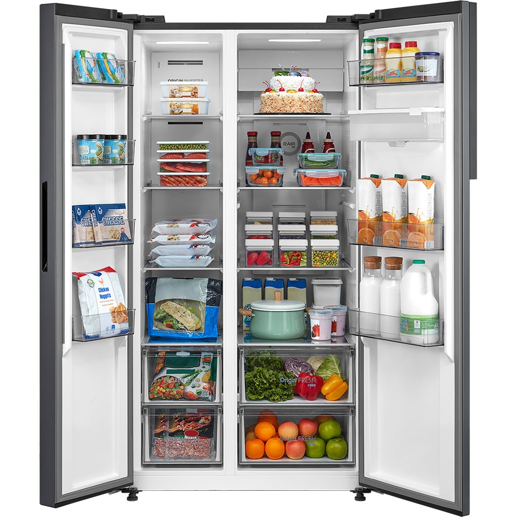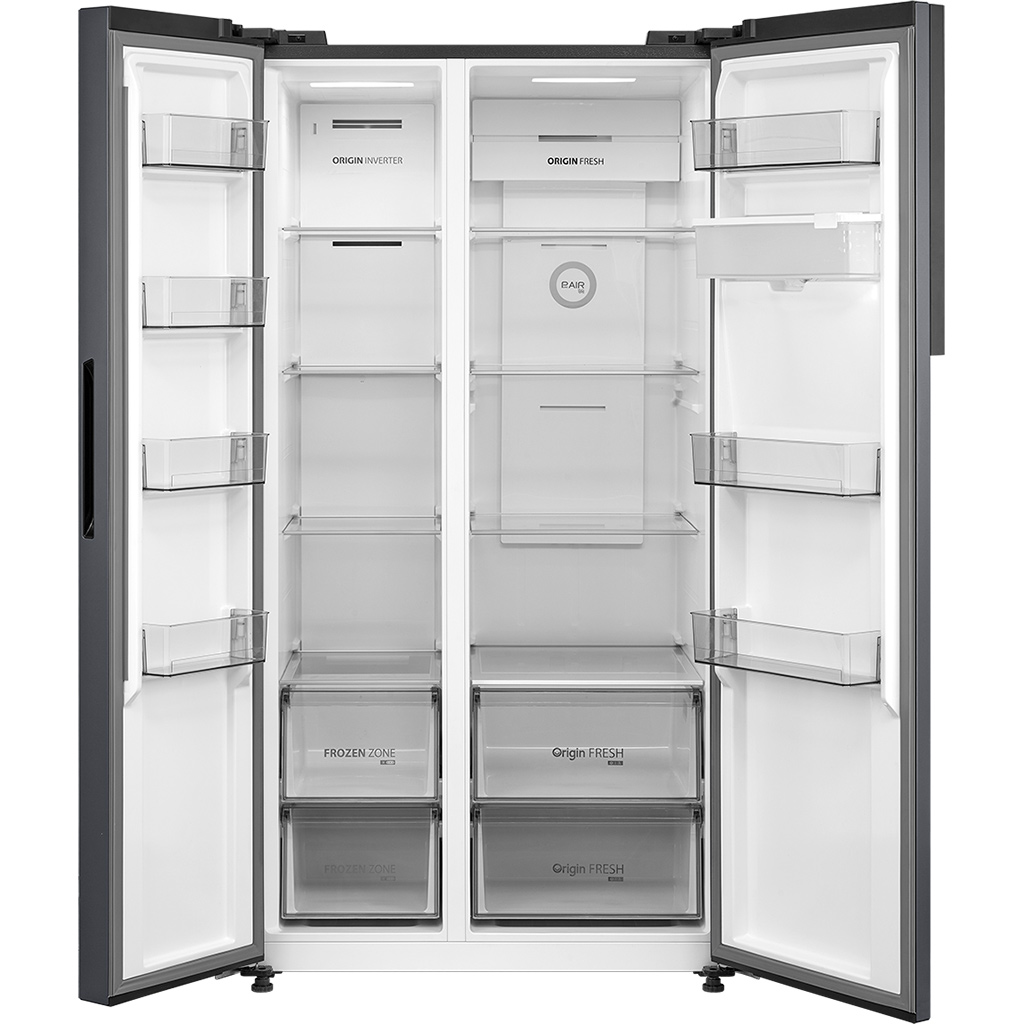 Tủ lạnh Toshiba Inverter 596 lít GR-RS775WI-PMV(06)-MG được thiết kế sang trọng với kiểu tủ Side by Side và chất liệu mặt tủ chống bám vân tay tối ưu. Hơn nữa, người dùng có thể điều khiển tủ lạnh từ xa thông qua ứng dụng thông minh trên điện thoại tiện lợi.